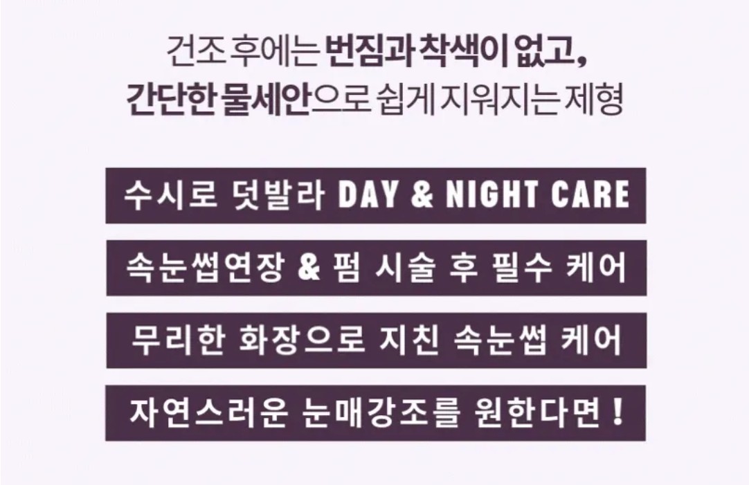 아침부터 저녁까지 내 속눈썹 케어가 가능하죠.